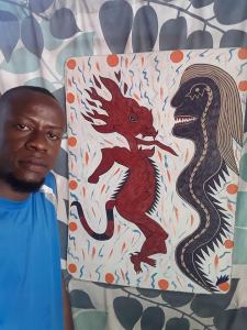Katelyne Alexis (*1976, Port-au-Prince), is a member of the Atis Rezistans group based off Grand Rue, downtown Port-au-Prince. Her work was exhibited in PÒTOPRENS: The Urban Artists of Port-au-Prince shown at Pioneer Works, Red Hook, Brooklyn and MOCA, N. Miami.